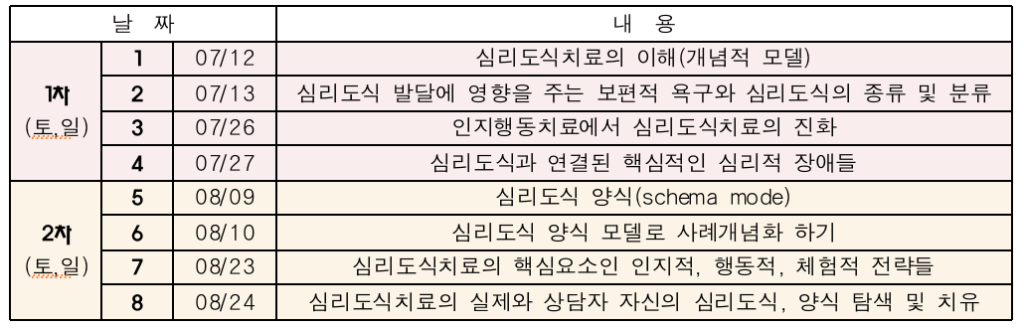 1. 대 상 : 심리도식치료 이론과 기법을 체계적으로 배워서 상담에 적용하고자 하시는 분